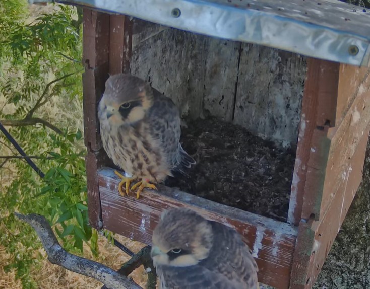 Kollar först hos Aftonfalkarna i Ungern nu har en till unge vågat sig ut ur boet,den 3:e har inte vågat ta det steget än.
