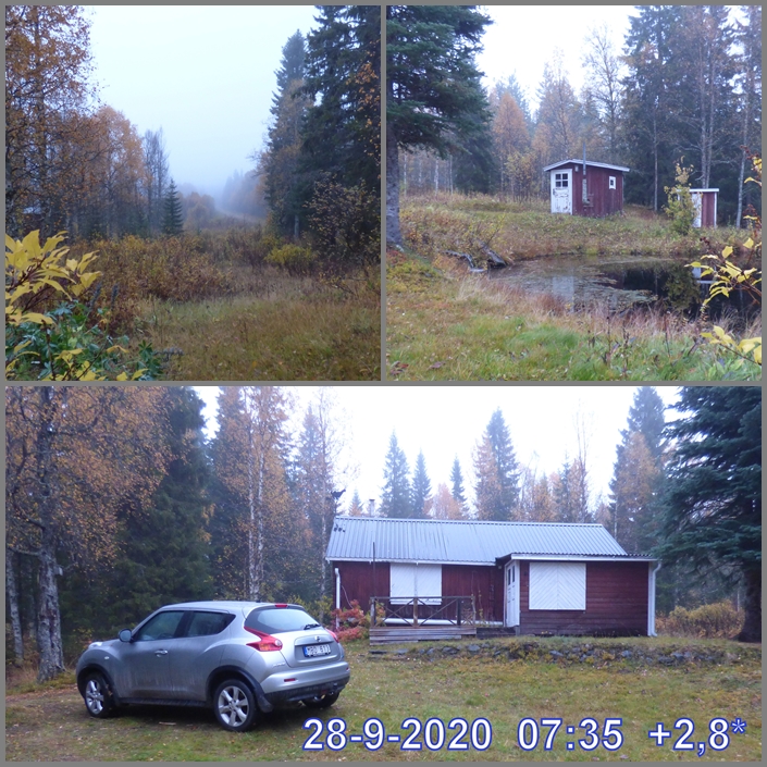 Det var ju dax att köra söderut idag,lite pyssel först,packa det som ska med hem,slå rödsprit i vattenlåset i diskbänken,stänga för luckorna på fönstren.Sedan kan jag säga adjö Stugan vi ses nästa år.Tog ett par bilder.