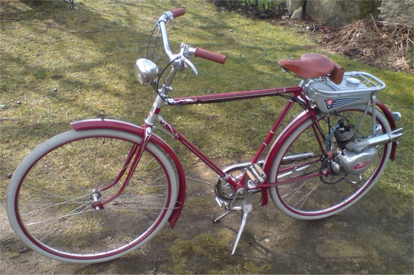Precis så här såg mopeden ut,i princip en vanlig cykel med en motor påhängd.